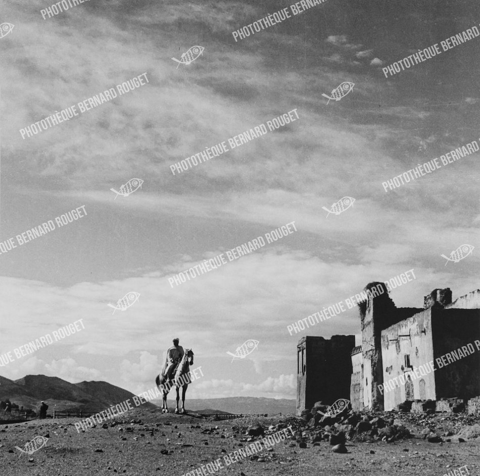 pendant le Moussem (pèlerinage), septembre 1942. Les moussems de Moulays Idriss évoquent la figure légendaire et réelle du fondateur des dynasties marocaines et du Maroc Musulman.